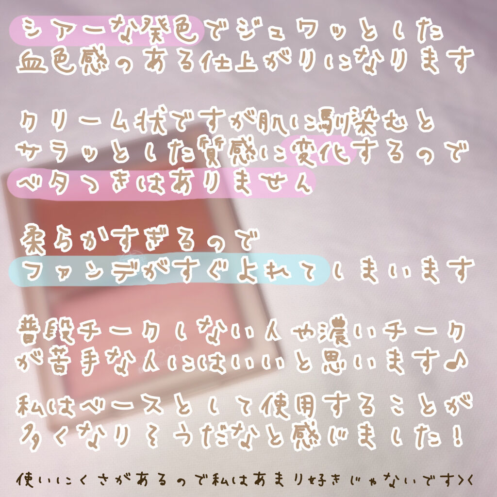 | クリームチークランキング第5位 | むにむに質感 、伸ばした瞬間からサラッサラ!!です🙆♂️ | 詳細を見る | |