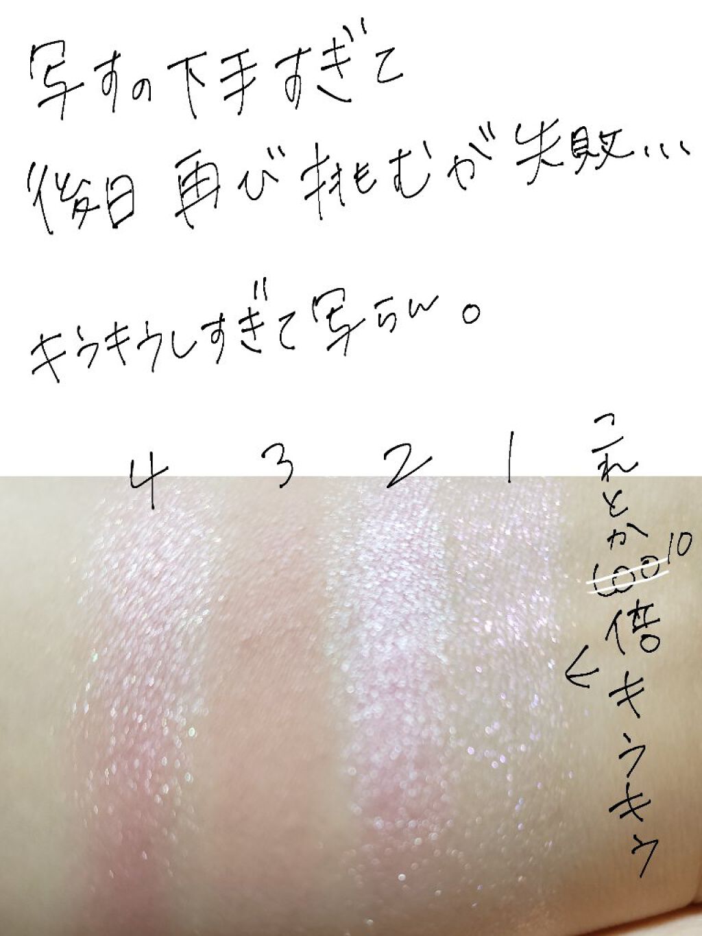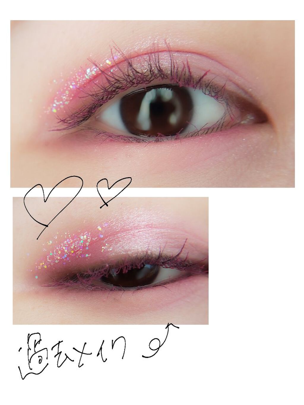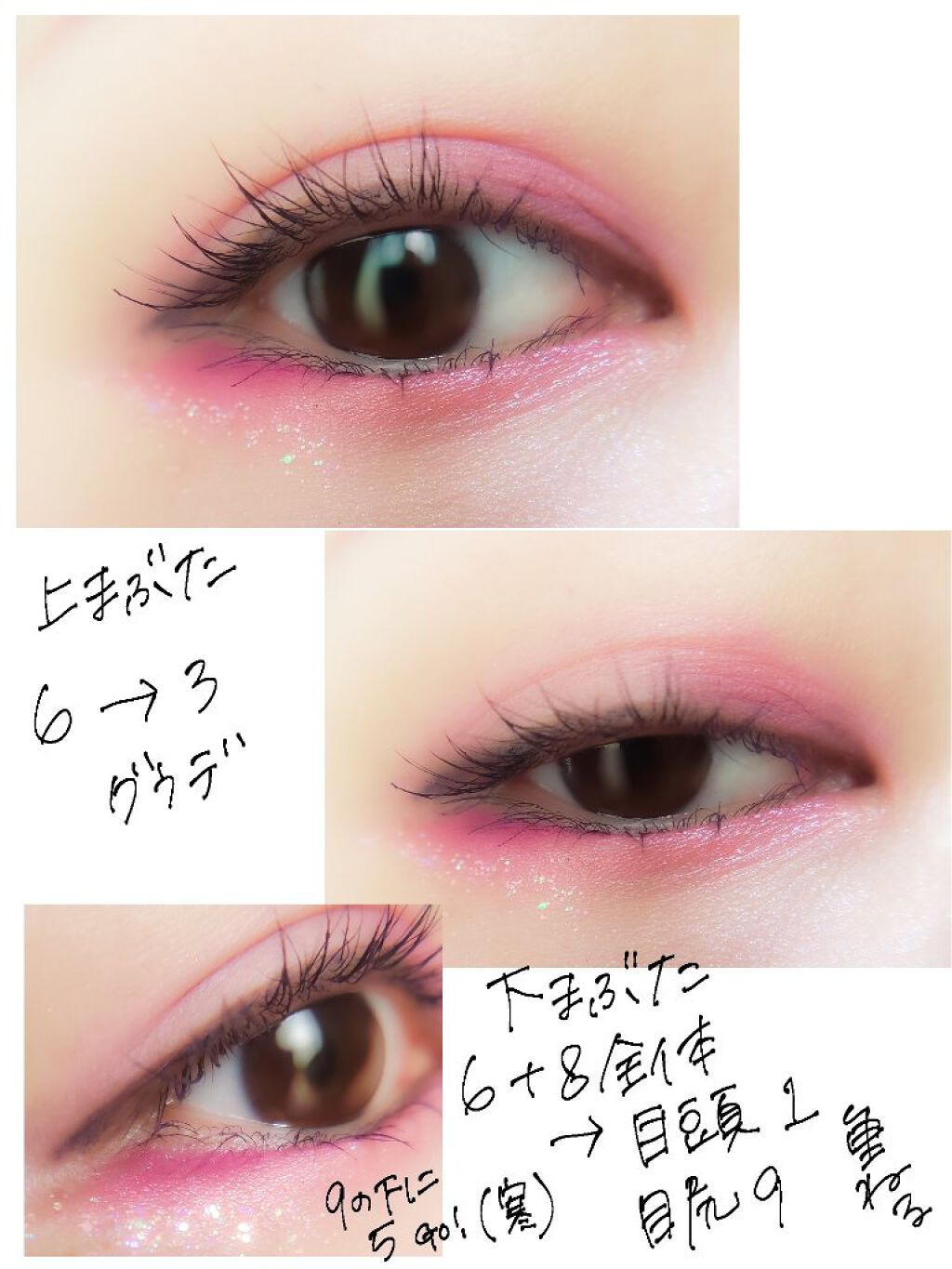 緋影は、右上アイホール左下二重幅+下まぶた 明雫は、下まぶた 宵雫は、目頭と黒目上 これめちゃくちゃ可愛いです!顔に秋が来てたまらんです!! 明雫と宵雫のたっぷりラメをとてもよく生かせてると思う(自画自賛メイク)限定なのほんともったいない体操。