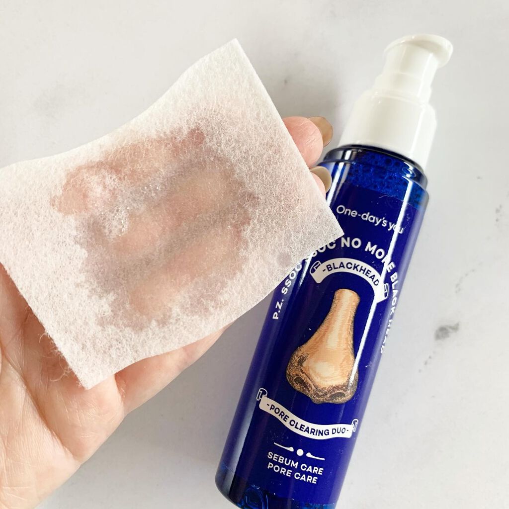 One-day'syou ノーモアブラックヘッド ノーズピーリングパッドなくてもコットン2枚くらい液でヒタヒタにして両小鼻に密着させても効果は感じます!私はコットンで使用してました!!ただ、正直に言うと改善はされた気はしますが、完全に黒ずみ毛...