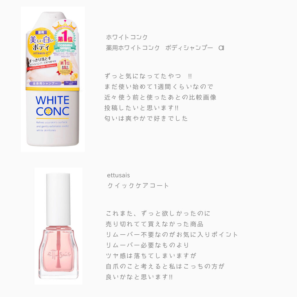 🤍今年の夏も白い肌で乗り切りたい人必見🤍肌が白くなるボディソープ(!?)#ホワイトコンクさんの商品を2週間使用した感想をまとめてみました૮.̫.ა《使用方法》・毎日#薬用ホワイトコンク_ボディシャンプーCIIで体を洗う。・週に1度#薬用ホワイ...