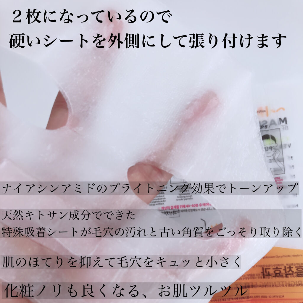 | スキンケアランキング第44位 | シートがみかん色でびっくり! とろっとろの液が含まれていて 貼り付けたらぴたーっとくっついてすごく気持ちいい! | 詳細を見る | |