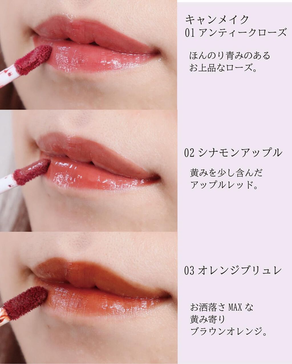 | 口紅・グロス・リップライナーランキング第48位 | ぷるんと つやっとしたティントになるのでまさに水彩画のような透け感のある発色 | 詳細を見る |