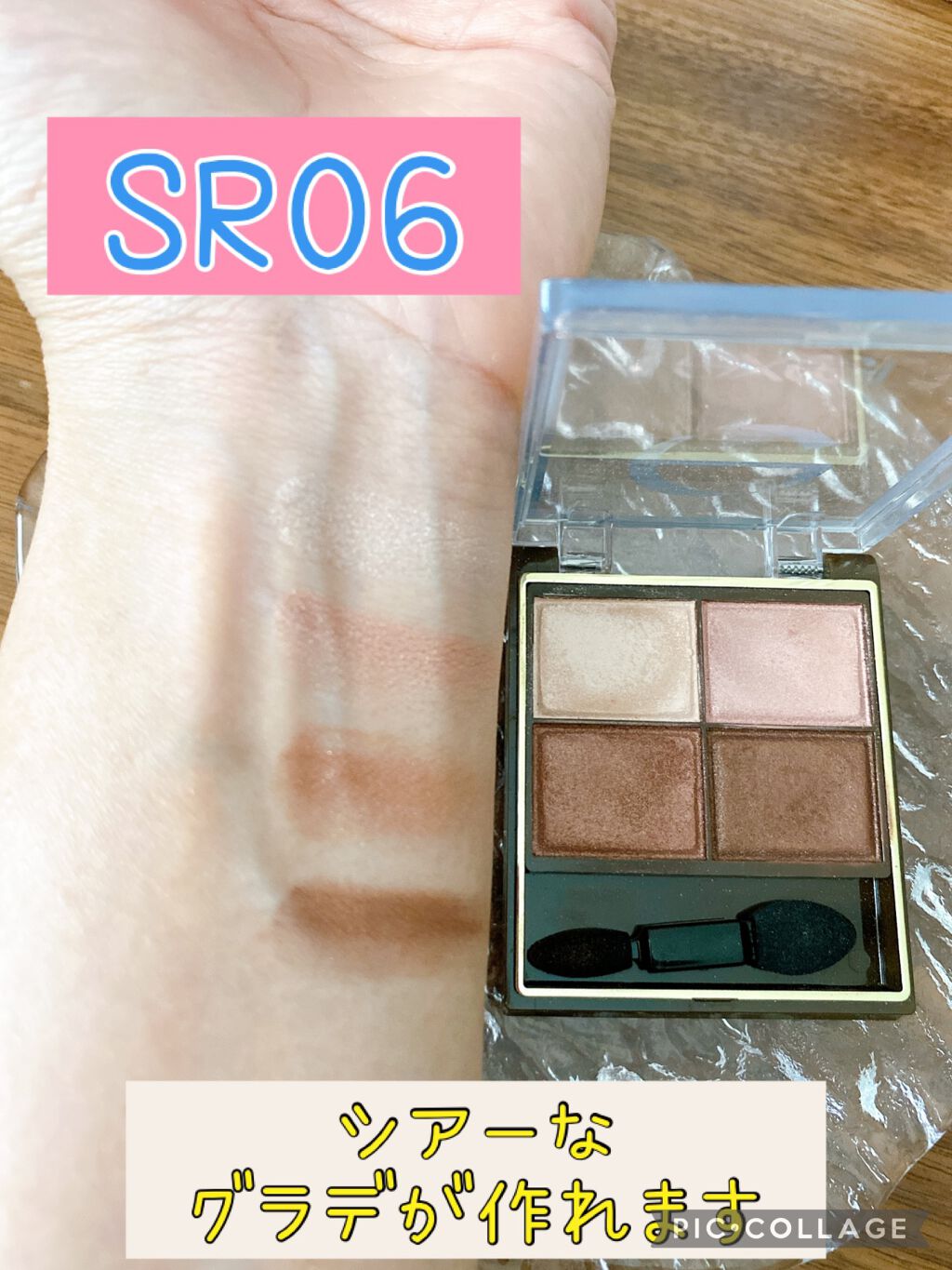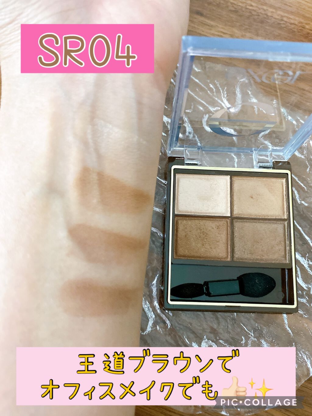 excelのスキニーリッチシャドウ可愛すぎるー🩷️ 何回もメイクに使いよる😂 右側の淡い色を重ねて、二重幅に濃いブラウンを重ねていきました(ღ✪v✪) お上品なキラキラ具合✨ こちらは、大好きな大好きな#gaho ちゃんにいただきました🎁