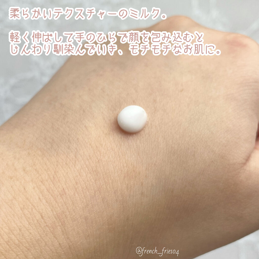 - 伸びがよく、すっと肌になじんでうるおい閉じ込める乳液 コクのある濃厚なテクスチャーなのにべたつきません 乾燥でごわついた角質層にも浸透し、なめらかな柔肌に