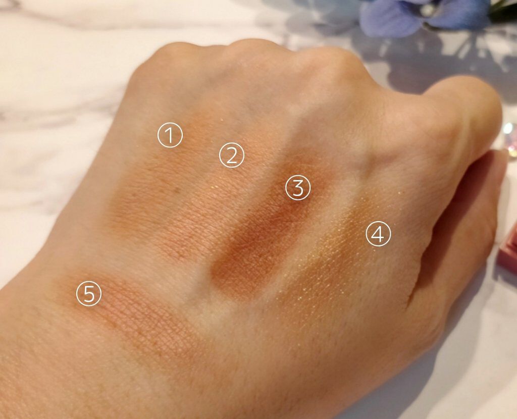 - <001 スウィートピンク> タルク、マイカ、グンジョウ、トリ(カプリル酸/カプリン酸)グリセリル、シリカ、窒化ホウ素、ステアロイルオキシステアリン酸オクチルドデシル、メチルプロパンジオール、ミリスチン酸Mg、マンガンバイオレット、ジメチコン、ミネラルオイル、プロパンジオール、赤酸化鉄、ヒドロキシプロピルビスパルミタミドMEA、ステアリン酸ジメチコノール、黄酸化鉄、ステアリン酸Mg、黒酸化鉄、トリエトキシカプリリルシラン、酸化チタン、メチコン、水 <002 ハローピーチ> マイカ、タルク、ホウケイ酸(Ca/Al)、酸化チタン、シリカ、ジエチルヘキサン酸ネオペンチルグリコール、フェニルトリメチコン、赤酸化鉄、グンジョウ、リンゴ酸ジイソステアリル、ヘキサ(ヒドロキシステアリン酸/ステアリン酸/ロジン酸)ジペンタエリスリチル、ネオペンタン酸イソステアリル、ステアロイルオキシステアリン酸オクチルドデシル、ミリスチン酸Mg、マンガンバイオレット、メチルプロパンジオール、ジメチコン、マカデミア種子油、ポリブテン、ステアリン酸Mg、プロパンジオール、トリエトキシカプリリルシラン、酸化スズ、メチコン、水 <003 ベイクド ジンジャー> タルク、マイカ、グンジョウ、シリカ、マンガンバイオレット、酸化チタン、トリ(カプリル酸/カプリン酸)グリセリル、赤酸化鉄、窒化ホウ素、黄酸化鉄、黒酸化鉄、ミリスチン酸Mg、ミネラルオイル、ステアロイルオキシステアリン酸オクチルドデシル、メチルプロパンジオール、ジメチコン、プロパンジオール、黄色4号、ヒドロキシプロピルビスパルミタミドMEA、ステアリン酸ジメチコノール、ステアリン酸Mg、トリエトキシカプリリルシラン、水 <004 グラムローズ> ホウケイ酸(Ca/Al)、タルク、ホウケイ酸(Ca/チタン)、マイカ、ジエチルヘキサン酸ネオペンチルグリコール、酸化チタン、フェニルトリメチコン、シリカ、ミリスチン酸Mg、リンゴ酸ジイソステアリル、ヘキサ(ヒドロキシステアリン酸/ステアリン酸/ロジン酸)ジペンタエリスリチル、ネオペンタン酸イソステアリル、ステアロイルオキシステアリン酸オクチルドデシル、グンジョウ、ステアリン酸Mg、メタクリル酸メチルクロスポリマー、メチルプロパンジオール、ポリブテン、プロパンジオール、酸化スズ、ジメチコン、ラウロイルリシン、マンガンバイオレット、赤酸化鉄、トリエトキシカプリリルシラン、黄酸化鉄、メチコン、水