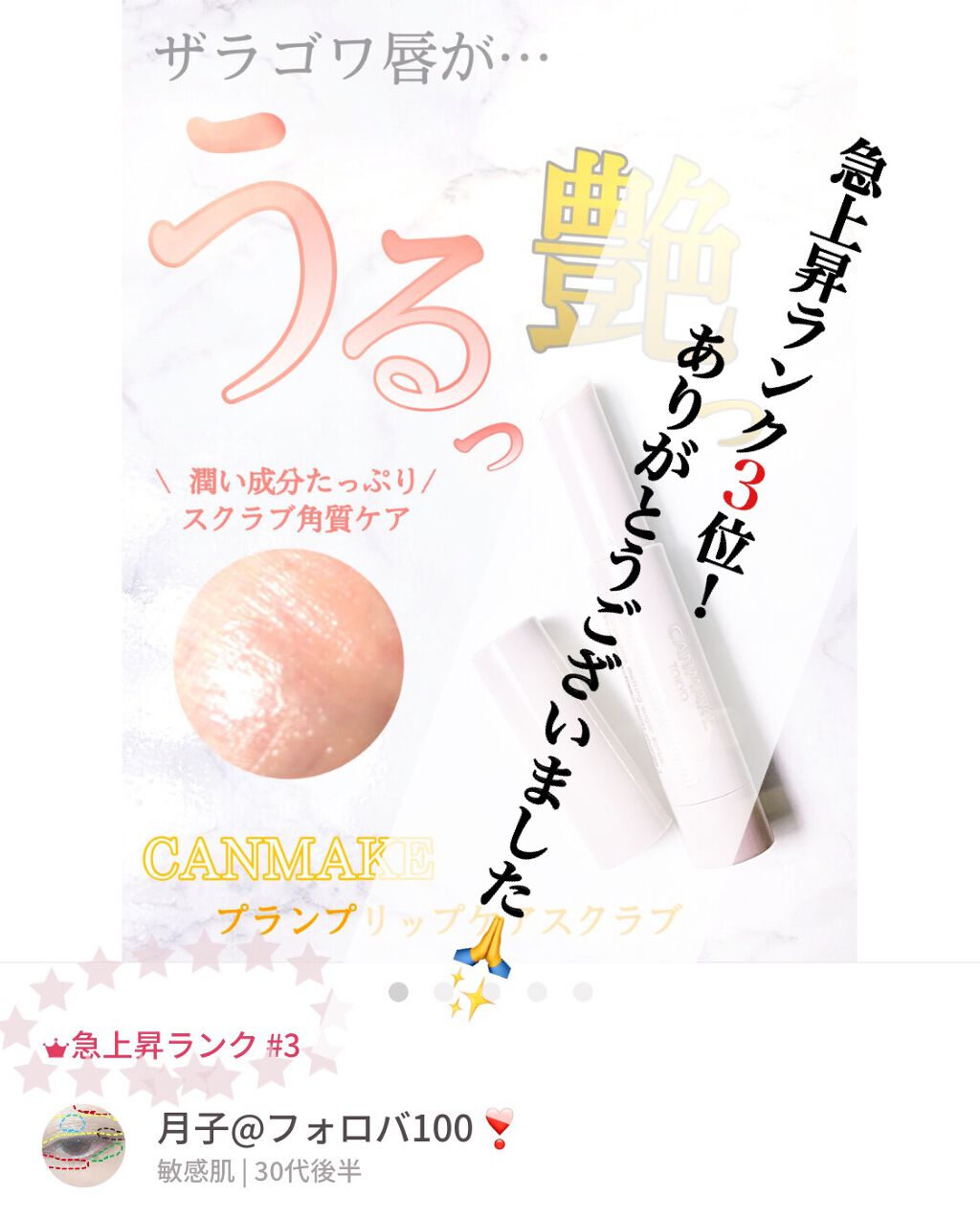 | リップスクラブランキング第9位 | しゃりしゃりのお砂糖スクラブが古い角質を優しくオフ🫧色付きでほんのり血色感も出せてお気に入り🫶🏻 | 詳細を見る | ||
