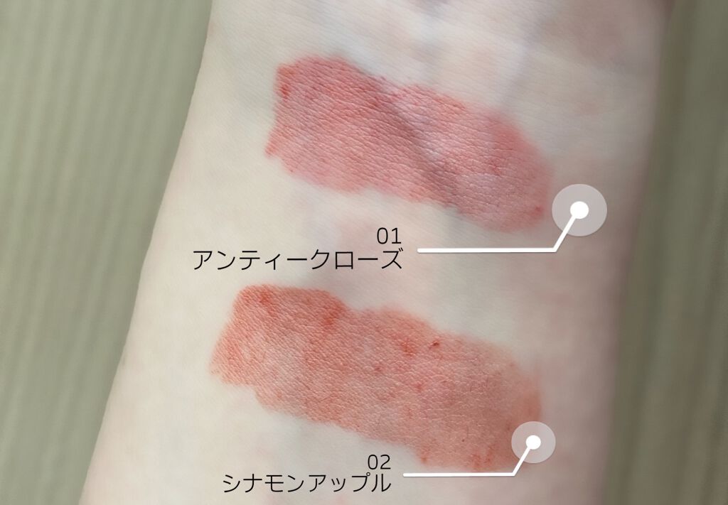 - <01 アンティークローズ> 水添ポリイソブテン、水、オクチルドデカノール、BG、エタノール、グリセリン、セテアリルアルコール、イソステアリン酸PEG-60グリセリル、ステアリン酸グリセリル、(アクリル酸ヒドロキシエチル/アクリロイルジメチルタウリンNa)コポリマー、フェノキシエタノール、ジメチコン、クエン酸Na、トコフェロール、水酸化Al、クエン酸、ジフェニルシロキシフェニルトリメチコン、スクワラン、ホホバ種子油、ヒアルロン酸Na、硫酸Ba、加水分解コラーゲン、セラミドNP、ソメイヨシノ葉エキス、カミツレ花エキス、酸化チタン、酸化鉄、黄4、赤227、赤104(1)、赤226、青1、グンジョウ <05 クラシックフィグ > 水添ポリイソブテン、水、オクチルドデカノール、BG、エタノール、グリセリン、パルミチン酸エチルヘキシル、セテアリルアルコール、イソステアリン酸PEG-60グリセリル、ステアリン酸グリセリル、(アクリル酸ヒドロキシエチル/アクリロイルジメチルタウリンNa)コポリマー、フェノキシエタノール、ジメチコン、クエン酸Na、トコフェロール、水酸化Al、クエン酸、ジフェニルシロキシフェニルトリメチコン、スクワラン、ホホバ種子油、ヒアルロン酸Na、硫酸Ba、加水分解コラーゲン、セラミドNP、ソメイヨシノ葉エキス、カミツレ花エキス、酸化チタン、酸化鉄、黄4、赤227、赤226、青1