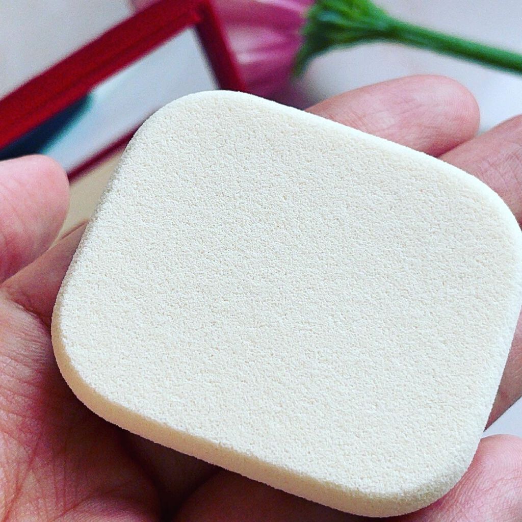 ふわふわしてて高級感がありますねっ(*'▽') 薄めの、持ちやすいスポンジです。 ファンデーションを選ぶときは比較的白いほうを選びますが これは塗ってて、( ゚Д゚)<結構、白い! よく伸びるしカバー力もなかなかです。 ちょっとの量で軽くポンポンとつけて肌になじませるだけで十分なんだもん。 紫外線防止効果もSPF50+・PA+++と、最高値だしカラバリが7色あるので自分に合った色が選びやすいのもいいのではと思います!