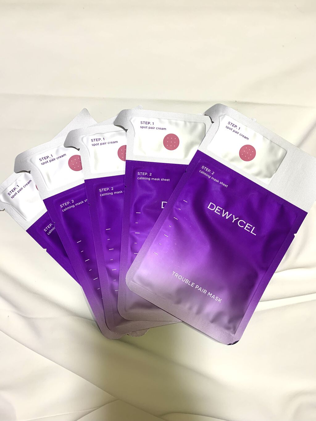 デュイセルの新商品トラブルペアマスクを使いましたこのマスクはトラブル肌のための二段階マスクになります鎮静に効果的なスポットペアクリームを悩みの部位に塗った後、高保湿カミングシートを顔全体に貼るというダブルケア肌全体に水分チャージができますまず...