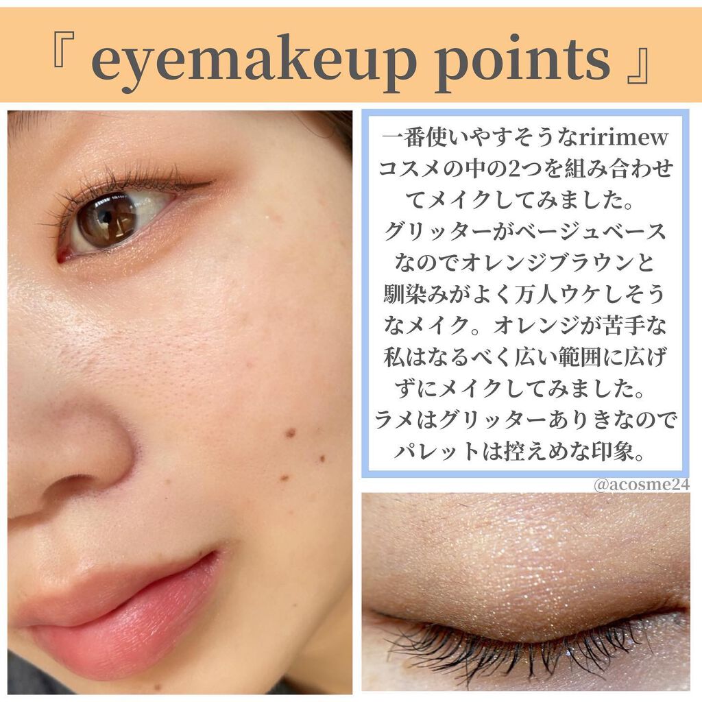 ギラギラになりそうなラメも繊細でラメゴミ民にも馴染む👏 そして濃くなりがちな韓国コスメのブラウンメイクですが濃すぎない発色!! 逆に濃いメイクが好きな方には物足りないかもしれません!🥲