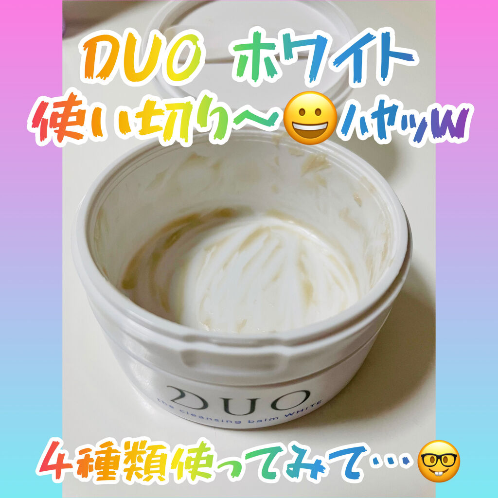 DUOザクレンジングバームホワイトa使ってみました!くすみケアに徹底アプローチ!透明感のあるなめらかな肌へ導きます。美容保湿成分がトリートメント効果も発揮しスッキリもちもちの透明肌に!W洗顔不要!汚れがしっかり落ちる感じがします。でも洗い上が...