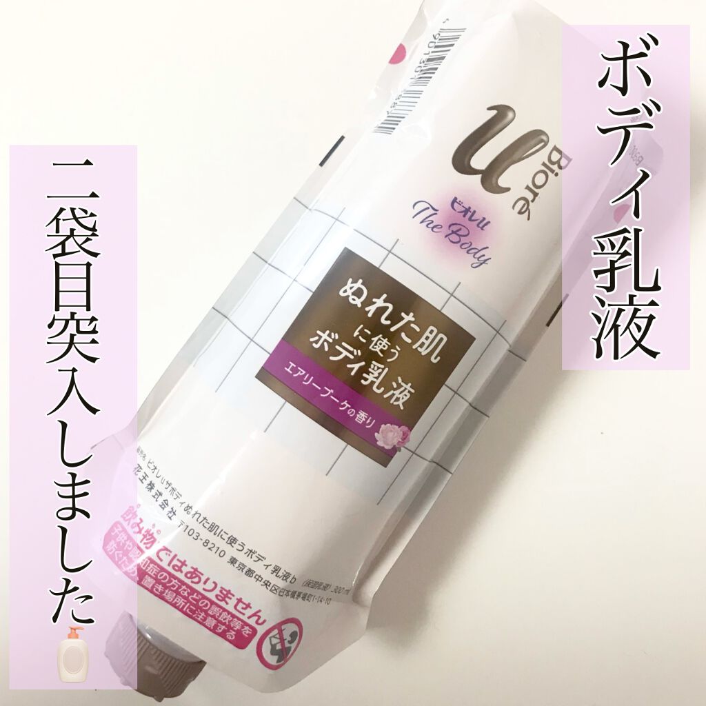 「ビオレuザボディぬれた肌に使うボディ乳液エアリーブーケの香り」服を着てる状態で全身にクリーム塗るのって面倒くさくないですか?この商品は、お風呂上がりに肌が濡れたまま使えて、とにかく便利です!テクスチャーは伸びが良く、少量でもスルスル全身に広...