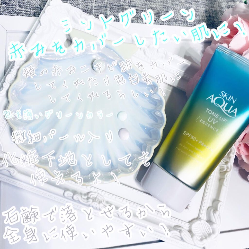 スキンアクアトーンアップUVエッセンスローズローズ初めて使いました!ラベンダーとグリーンは使ったことがあって、日焼け止めや化粧下地はラベンダーを買うことが多いけど、ローズは自然にトーンアップして顔色が良く見えるので良いなと思いました😍白くなり...