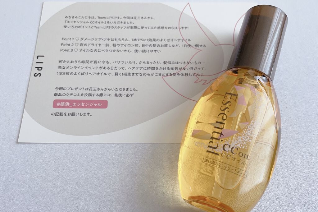 乾燥知らずのサラ艶髪へ!キューティクルケアオイル✨花王エッセンシャルCCオイル濡れた髪にも乾いた髪にも朝昼夜使えちゃう万能オイル!ダメージケアはもちろん、1本で様々な効果が期待されます。オイルなのにベタつかないのが本当にポイント高いです!画像...