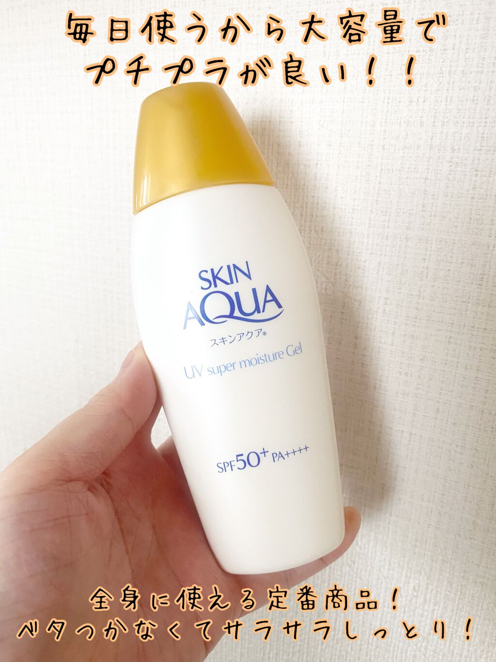 「スキンアクアスーパーモイスチャージェル」✔️3種のヒアルロン酸(うるおい成分)配合 ✔️スーパーウォータープルーフ✔️顔・からだ用、化粧下地にも✔️無香料、無着色、パラベンフリー、鉱物油フリー✔️SPF50+/PA++++/UV耐水性★★...