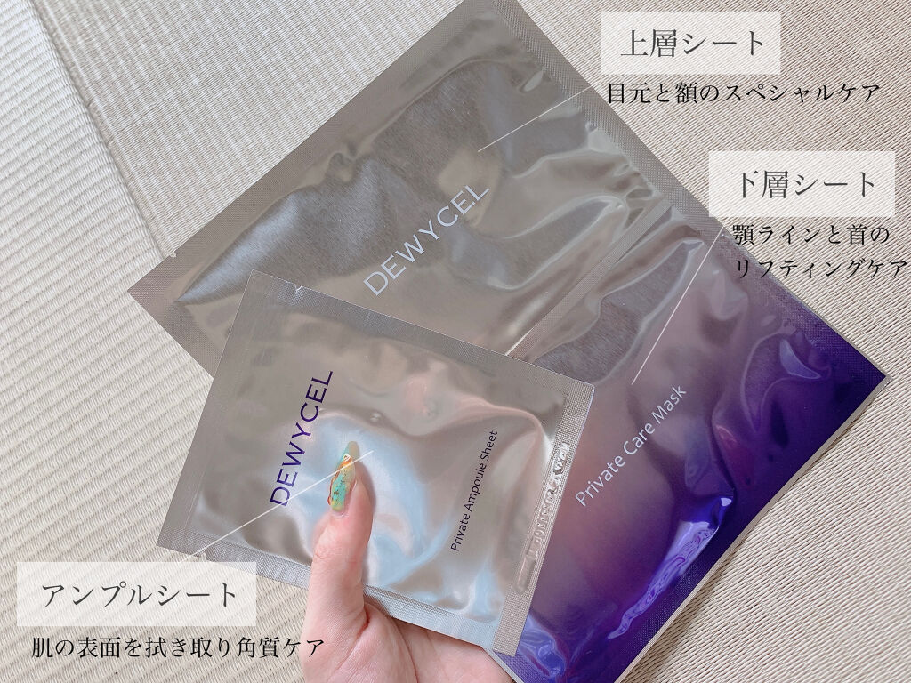 #PRDEWYCELさまからいただきましたデュイセルプライベートケアマスク\1週間に1度のご褒美ケアマスク/アンプルシート、パック(上層&下層)の3STEPのタイプ✨️・アンプルシートしっかりした厚みのあるシートでふき取りやすい凹凸面は優しい...