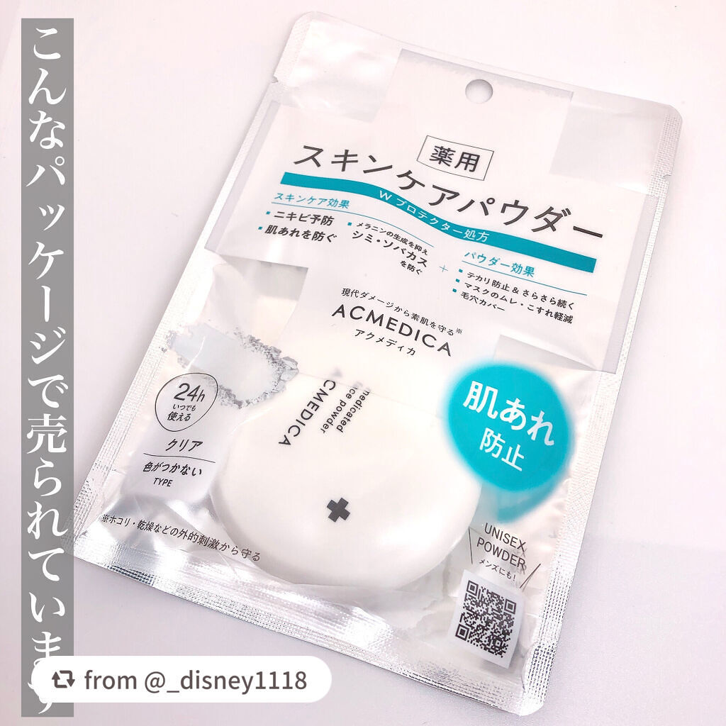 - 【医薬部外品】 マスクによるムレ・こすれ、ニキビetc... 『現代ダメージから素肌を守る』人気の薬用フェイスパウダー【アクメディカ】がリニューアル♪ 持ち運びに便利なミラー付きコンパクトになりました♪ 色がつかない『クリア』タイプです。 ●薬用【肌あれ・ニキビ予防】 ・殺菌有効成分:サリチル酸 ・抗炎症有効成分:グリチルリチン酸ステアリル ●薬用【美白】 ・メラニンの生成を抑え、シミ・ソバカスを防ぐ:プラセンタエキス ●皮脂吸収パウダーでテカリ・べたつきを防ぎ、さらすべ素肌が続きます。 ●ソフトフォーカス効果で、気になる毛穴・凹凸をふんわりカバー。 ●パウダー効果で、マスクによるムレ・こすれや、ホコリ・乾燥などの外的刺激から肌を守ります。 ●美肌をサポートする保湿成分もたっぷり。 ●色がつかない透明タイプ。 洗顔不要でスキンケア後のべたつきケアや、ナイトパウダーとしても。 ●どこでもスキンケアできるミラー&パフ付きコンパクト になりました。 (販売名:薬用パウダーWS10)