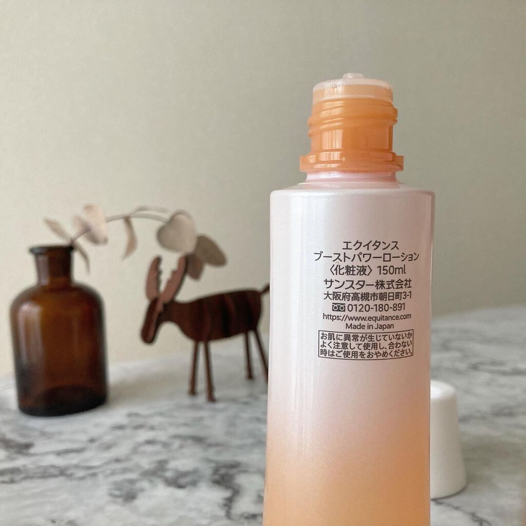 *サビついた肌を磨く美しさの連鎖を生み出す化粧液。健やかな美の土台を築くファーストステップ。・・エクイタンスブーストパワーローション・・とろりとしたローション。年齢肌にしっかりとお肌にローションが届くような感じ。しっとりなのにさっぱりした感じ...