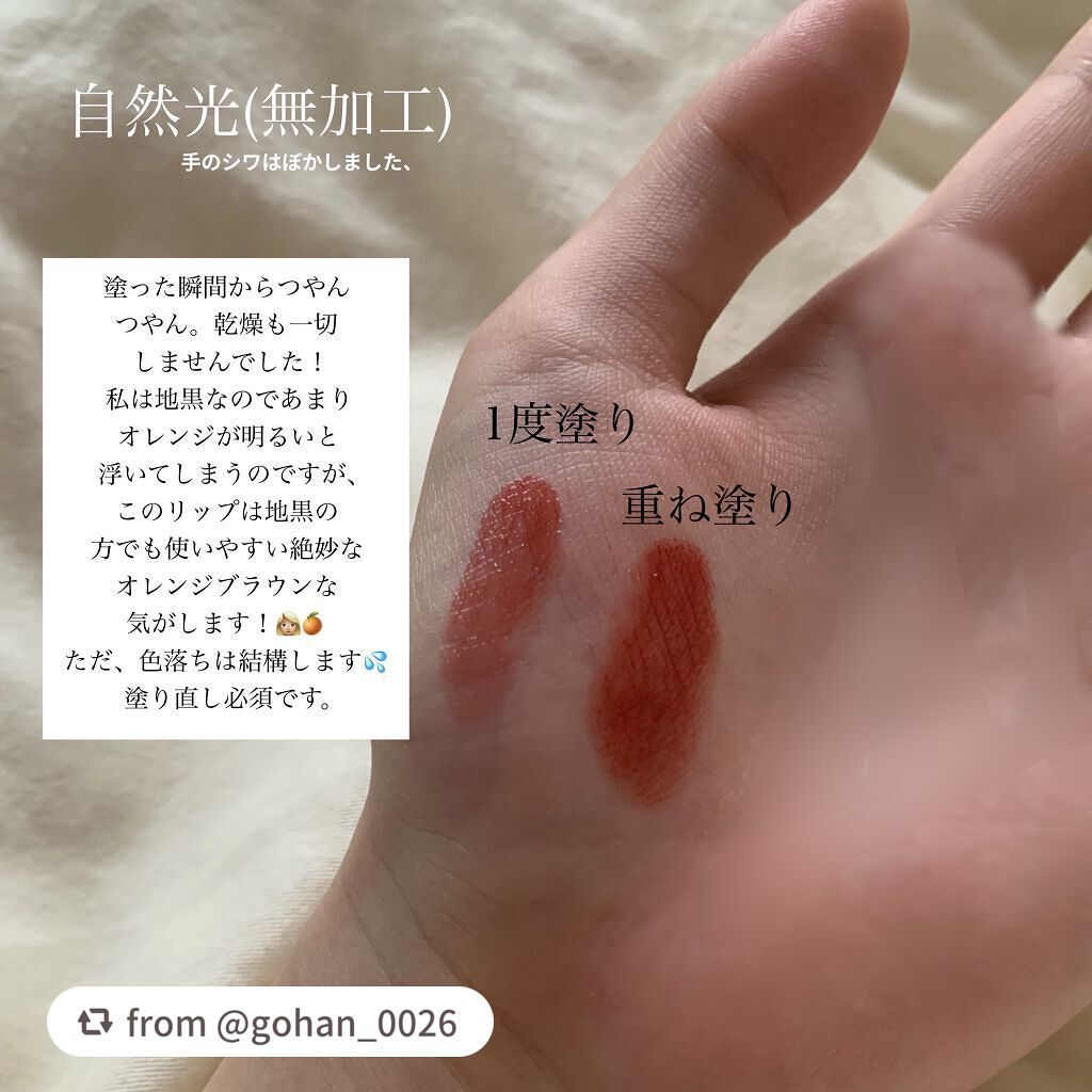 | 口紅・グロス・リップライナーランキング第12位 | シロップのようにとろーりしていて 唇にのせると密着してくれる。じゅわっとした発色とむっちり感が たまらなくよかった⸝⸝⸝♡ | 詳細を見る | |