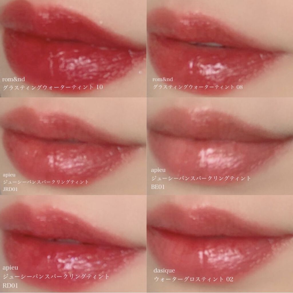 ❤️A'pieuジューシーパンスパークリングティントRD01 いちころライチ❤️見たままの発色でディープなブラウンレッドです🍎✨ジュエリーパウダー配合でキラキラとしたラメ感と綺麗なツヤ感が楽しめます😊💓唇に塗ると落ちにくいですが、クレンジング...