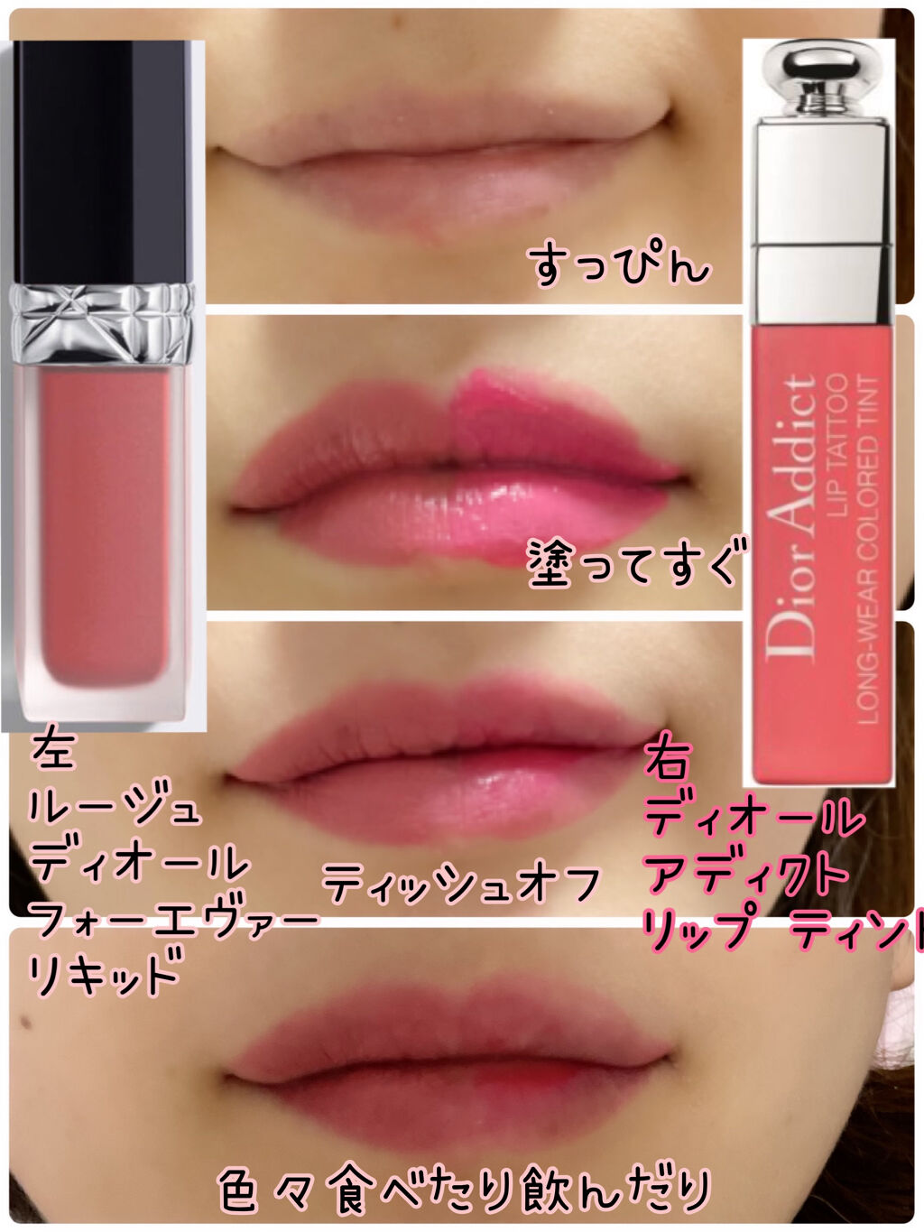 色持ちがいいと口コミがあり、購入しました! ティントだから色持ちがいい!けど、ご飯食べると綺麗に色落ちしていて塗り直さないと🥺 ティッシュオフすると乾燥が気になるのでマキシマイザーを上から塗って過ごしてます。 #デパコス #ルージュ #マットリップ #落ちないリップ #Dior #ディオール #ブルベ冬 #ブルベ夏