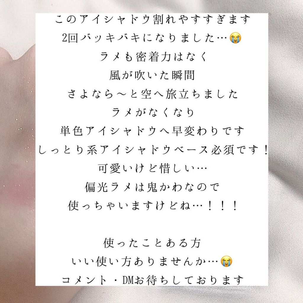 | 単色アイシャドウランキング第8位 | 繊細なラメがきらっきら✨ 発色も🙆♀️ めっちゃ可愛い色なの💓 | 詳細を見る | |
