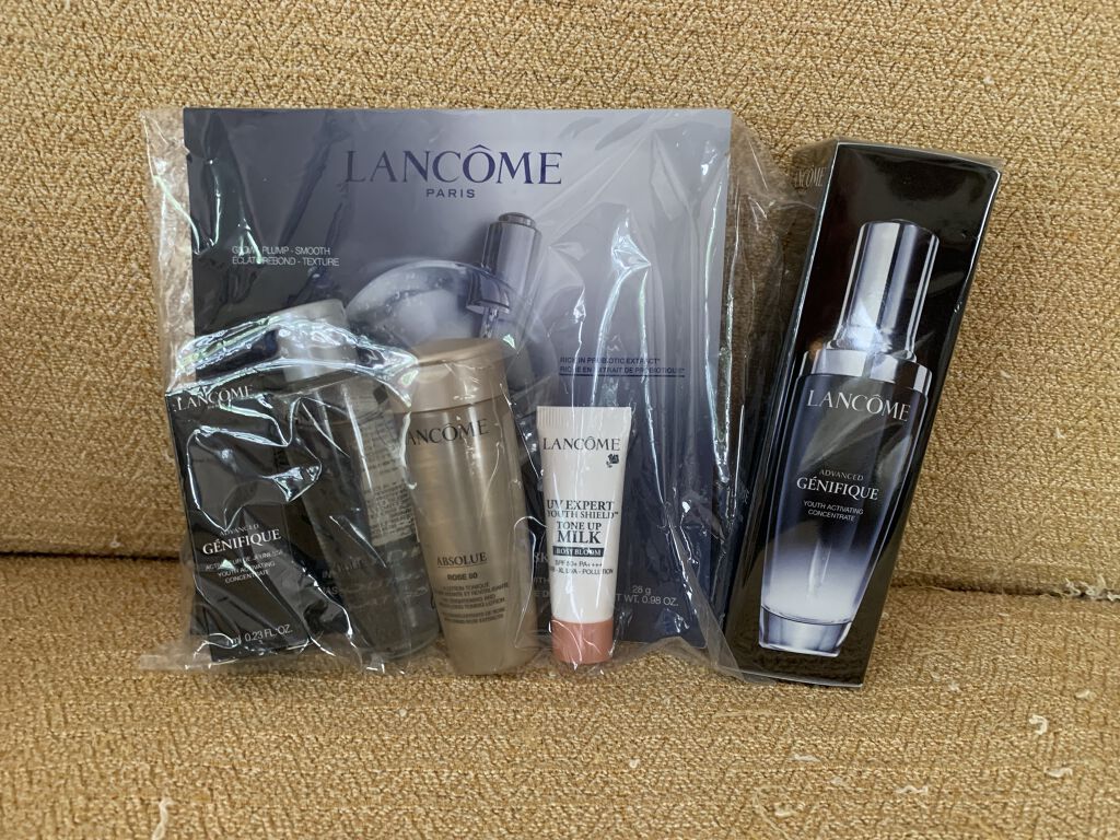 LANCOME ジェニフィックアドバンストN 50ml定期便で頼んでる美容液が届きました!今回から、特典内容が変更になってるようです。化粧水2種類と、下地と、美容液と、マスクの試供品がセット。化粧水たっぷり使えるので嬉しいです。...