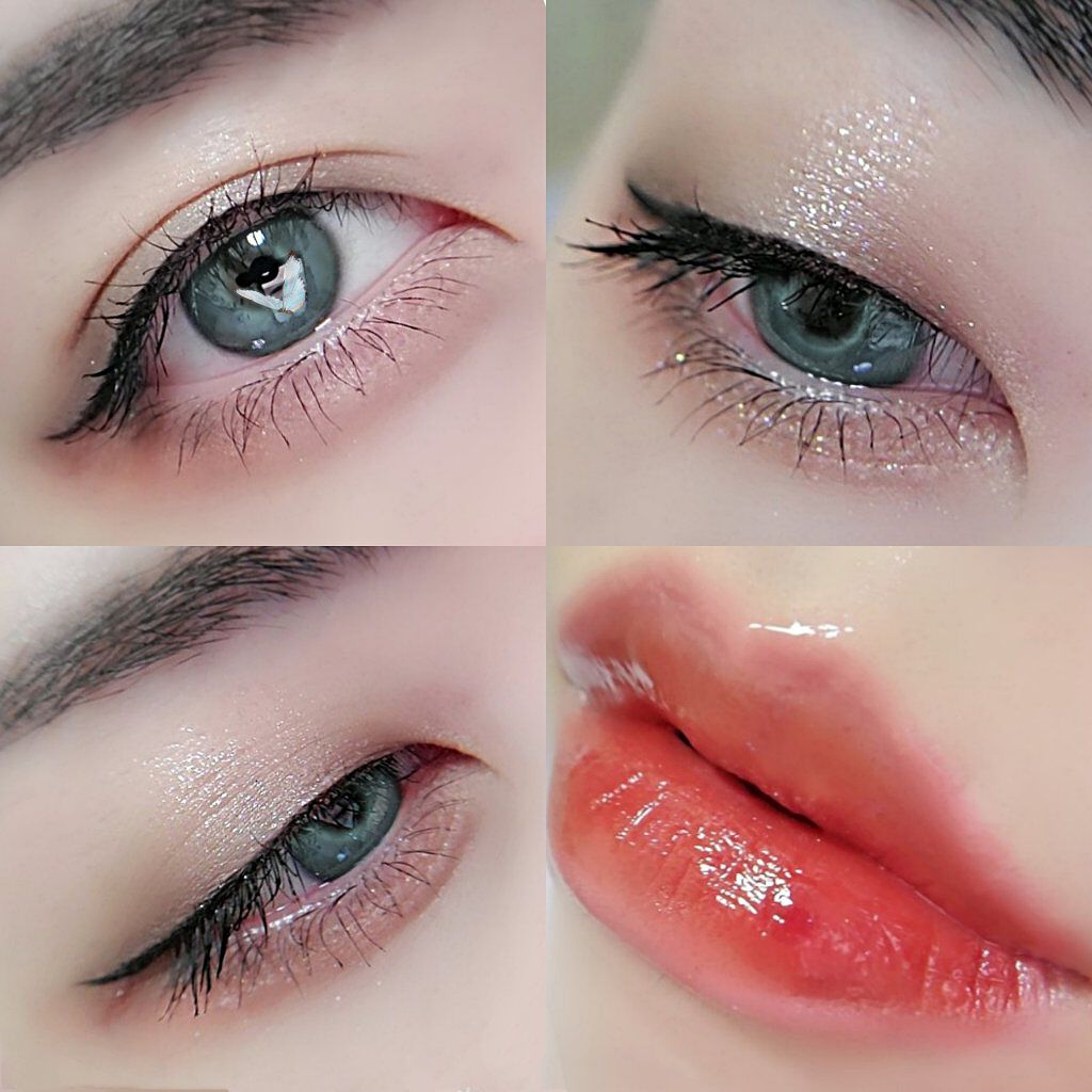 カメラだとかなり青く写りやすいのですが 肉眼だと3枚目のような青みのあるグレーに発色するので ちゃんと瞳を青くしたい方は物足りなさを感じるかもしれませんが 派手過ぎず、ナチュラル過ぎずでとても可愛いです✨ 乾燥はほとんど気になりませんでした。 ブルベメイクとの相性が良いので活躍してくれそうです☺️ アイシャドーは【rom&nd/ベターザンパレット(DUSTY FOG GARDEN)】。 上瞼中央と涙袋の青ラメは【JUDYDOLL/モネドリーム20色アイシャドウ】。