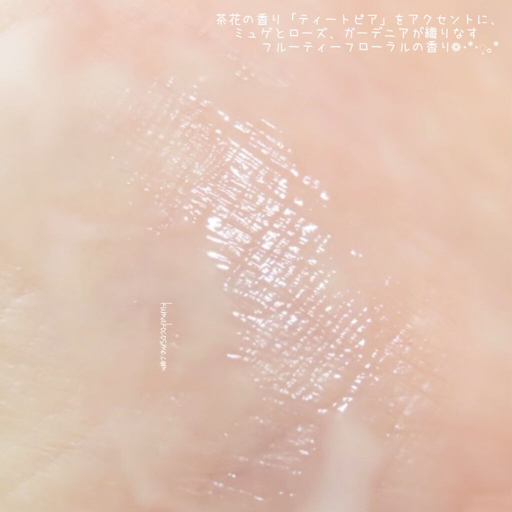 - 肌を保護し、肌のうるおいを保つ角層のバリア機能の働きに着想を得た化粧液。瞬時に纏う層構造の保湿ヴェールが、乾燥環境から肌を守り、充実のうるおいをあたえる化粧液。しっとりとやわらかな肌に整えると同時に、光拡散効果で瞬時にふんわりと明るい肌へ。毎日のケアが、力強い美しさのベースに。「ヴェールオンスキン処方」。「ティートピア」をアクセントに、ミュゲとローズが織りなすフルーティーフローラルの香り。