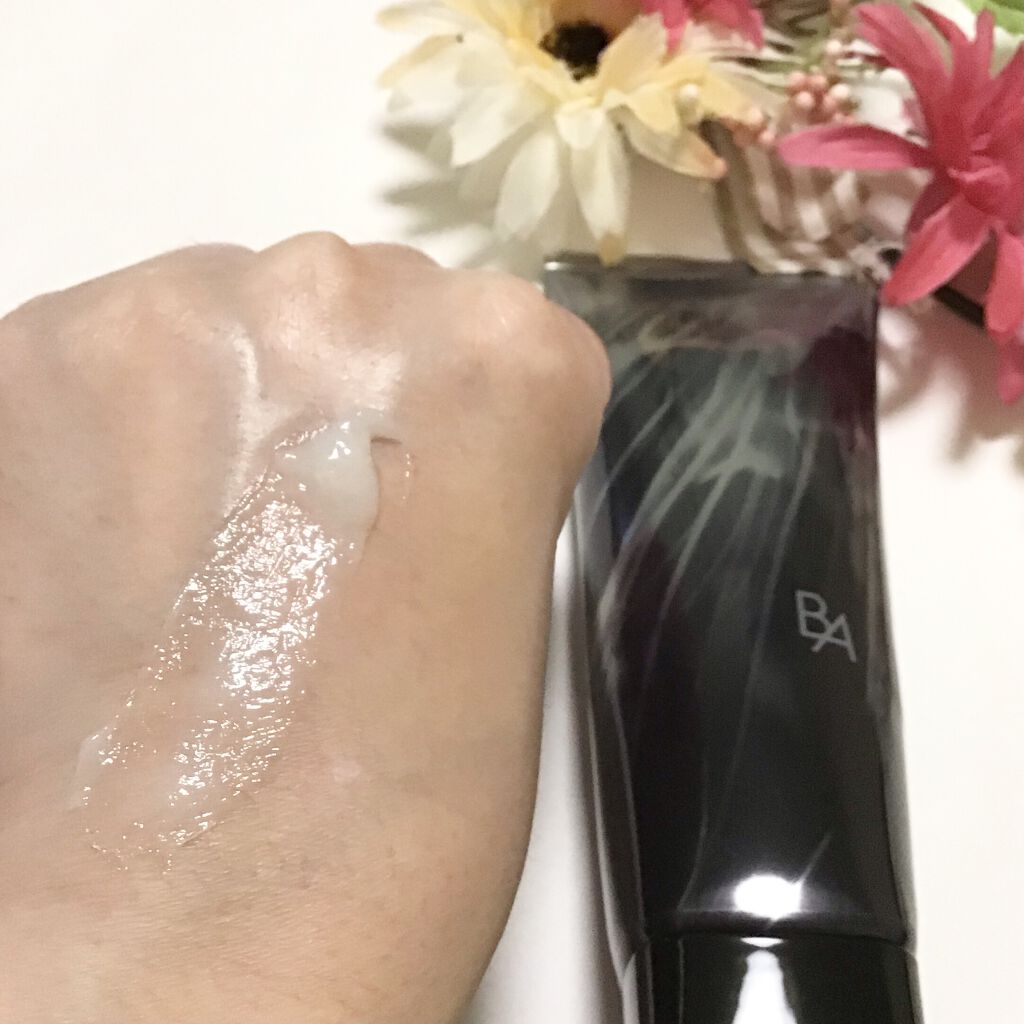 コーセー独自開発のトリートメントシールド成分により、高いフィット力・負担感のなさ・マスク時の化粧もちを叶え、軽やかなタッチで心地く、マスクにもつきにくいという特徴の商品となっています。 SPF50+/PA++++と紫外線防止効果もある点も魅力的に感じました。 手に取り出してみるとみずみずしいテクスチャーのクリームで、スーッと心地のよくのばしていくことのできる伸びの良さを感じました。 しっとりとした負担感のない付け心地で、ある程度伸ばすと、ピタッと肌に密着するようにして馴染み、毛穴や色ムラも目立たずにナチュラルにカバーしてくれ、ツヤ肌を演出してくれる仕上がりになるところも気に入りました。