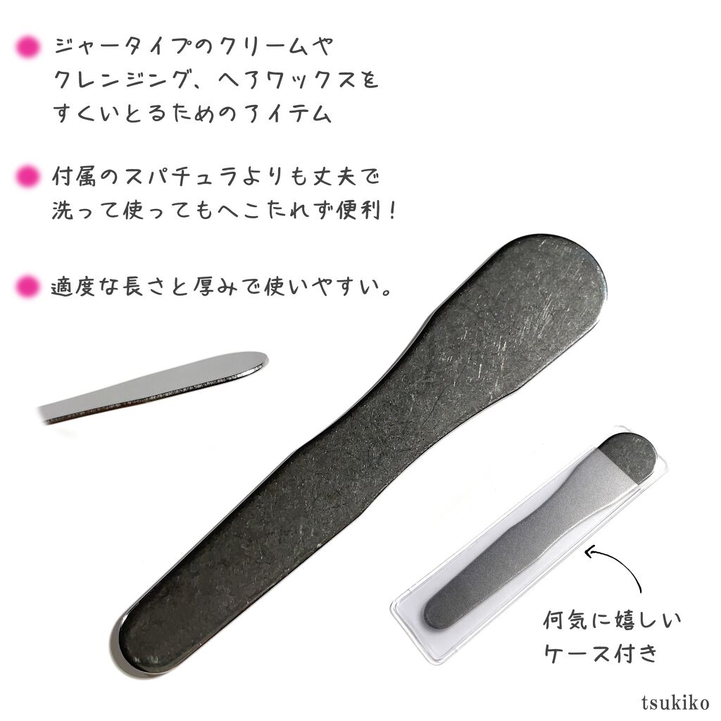ステンレスなので壊れにくく錆びにくく使い勝手が良さそう(๑´ㅂ`๑) 長さ8.5センチくらいでアイススプーン?ヘラ?の様なデザイン ジャータイプのボディクリームを太い方を使って取ってます。細い方はジャータイプのリップとかにいいかもです。
