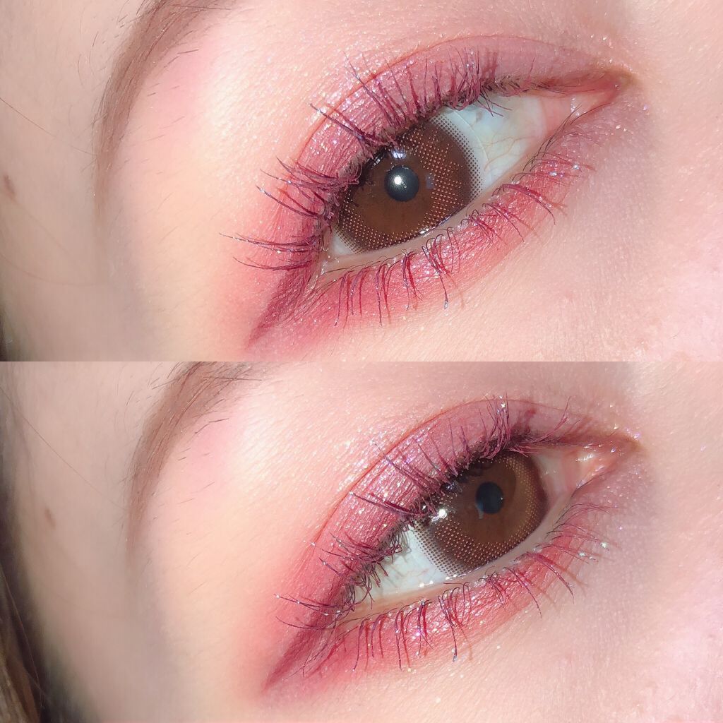 マットなレッドブラウンと多色ラメ🤩!!✨マスカラはブラック×ブラウンで👀💕✨私の好きな組み合わせ\♡/"マット2色で簡単グラデーションをして指で多色ラメを重ねる❕✨涙袋には、小さめのチップで涙袋中央だけにちょん。たっぷりめにのせるのが好き😍💓...