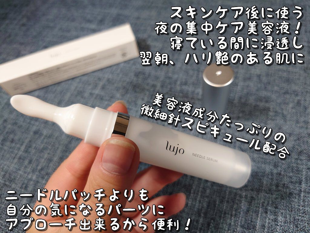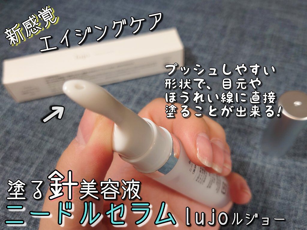 毎晩1分とタイパ最強〜⏰👍✨ 35種類もの美容成分が配合された今話題の目元美容液です(๑•̀ㅁ•́ฅ✨ lujoニードルセラムにはクリームの中に毛穴より小さい針(マイクロニードル)がたくさん入ってるんですって🪡 テクスチャーは、美容液というよりもクリームっぽい感じで、浸透力保湿力共に高めやと思います👍✨
