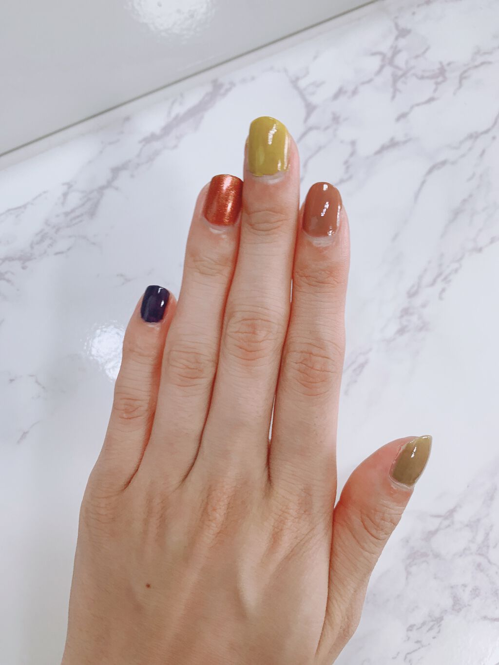 #アースカラーで輝く指先【ブラウン系おすすめカラー】キャンメイクカラフルネイルズN15チョコレートシロップN55チャイティーラテN72マロングラッセN36ビターキャラメルN74クレームブリュレ【アレンジ使用アイテム】キャンメイクカラフルネイル...