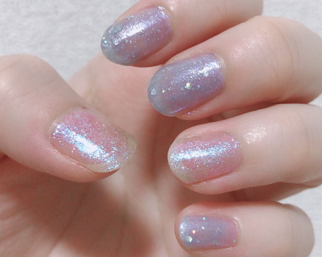 Paradoパラドゥグリッタリーネイル【使った商品】SV01シュガーシャワー【商品の特徴】¥495円(税込)平筆タイプ速乾処方採用【使用感】金平糖を散りばめた様な偏光ホログラム・パールが可愛いネイル液自体は透明でニュアンスにも使える偏光ホログ...