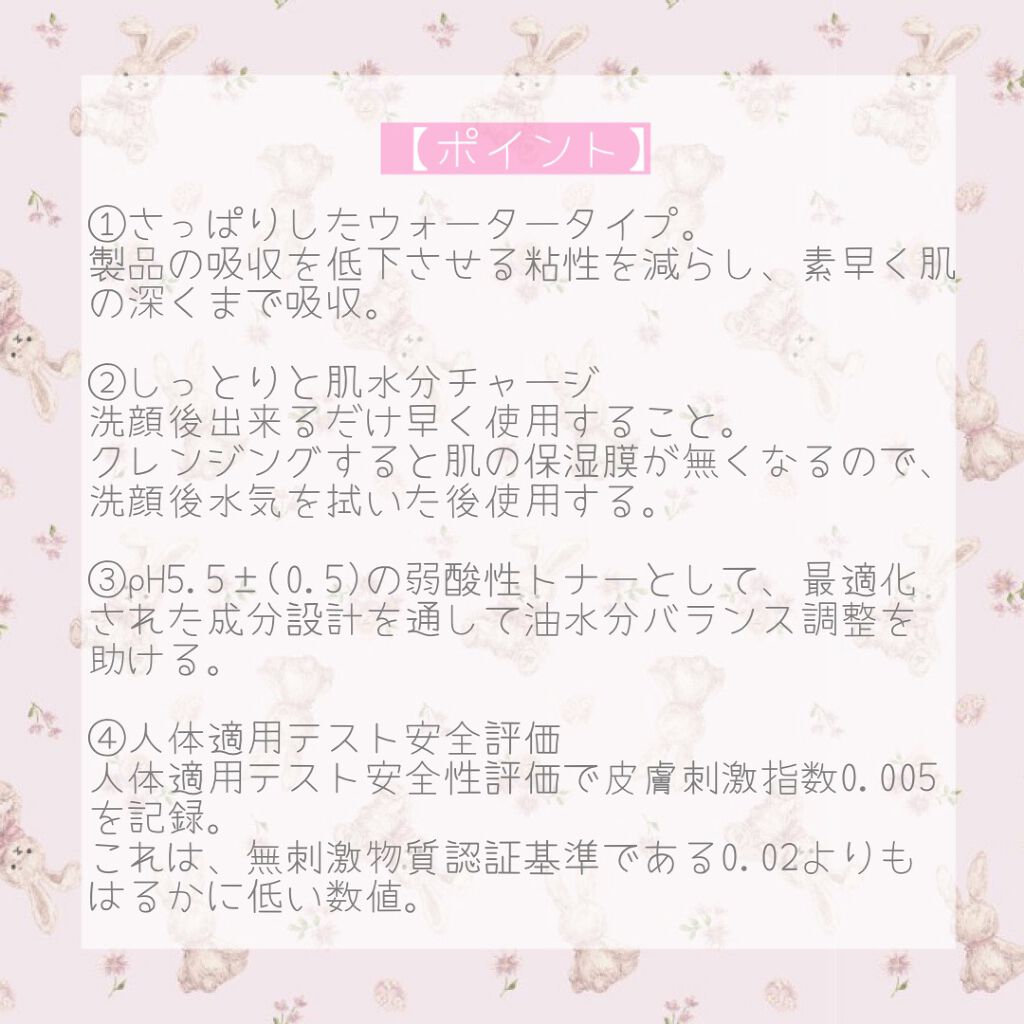 | 化粧水ランキング第185位 | テクスチャは若干とろみのある感じ。 肌にするするなじんでいく✨ | 詳細を見る | |