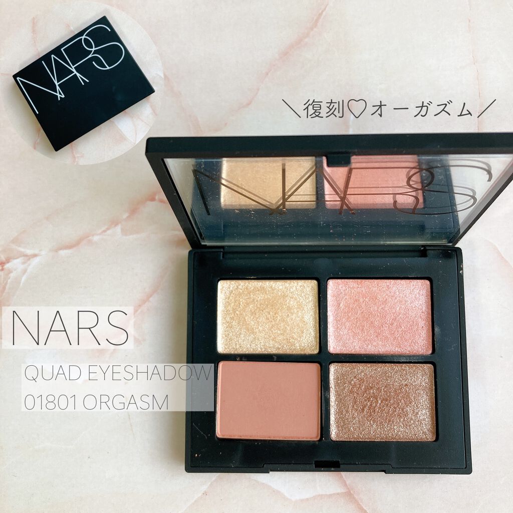 NARSクワッドアイシャドー01801復刻オーガズムとタージマハルコラボ❤️ベースにオーガズムを広めに入れて、アイラインはタージマハルの濃いカラーを。タージマハルの左上キラキラを中央にのせました💕したまぶたにはふんわりオーガズムの左下を❤️涙...