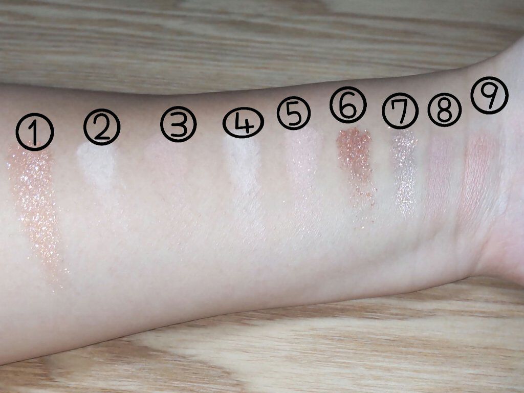 今回紹介するのは[dasiqueシャドウパレット#03NudePotion]一時期、話題になったときに購入して使ってみました。マットとラメのカラーが入っていてとっても使いやすいし、どの色を使ってもナチュラルにかわいい目元に仕上がる!私は②、⑤...