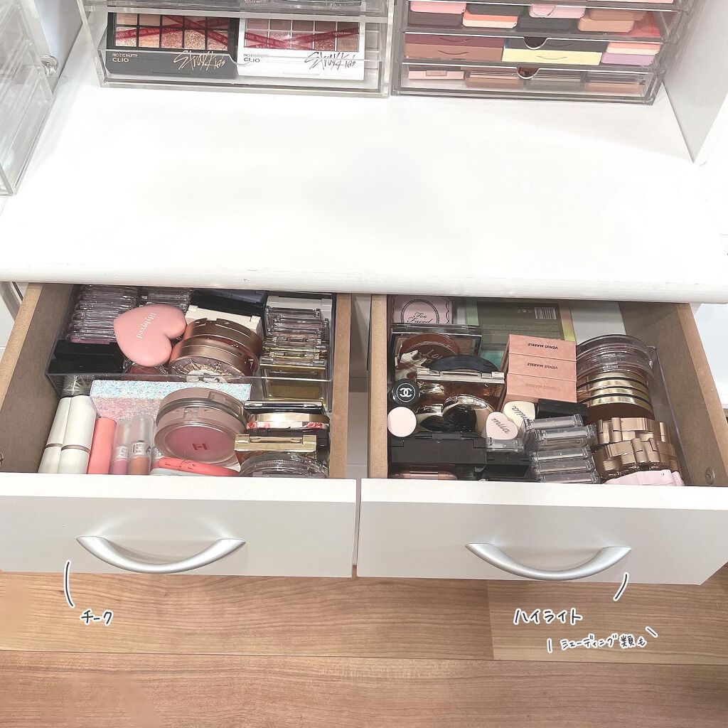 メイクする度にワクワク出来そうなドレッサーですね🥲🤍とくにリップとアイシャドウのゾーンがコスメヲタクの夢!って感じがします!💌