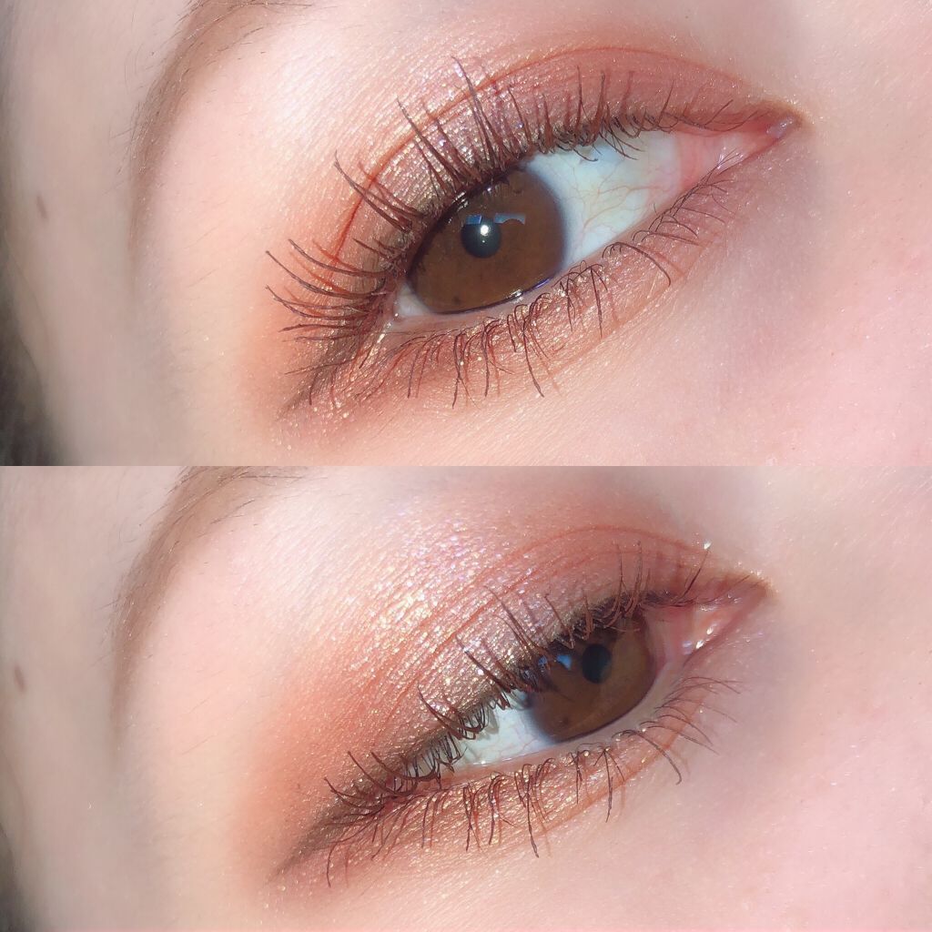 よくパレットのなかで明るいカラーをベースにまぶたに広く塗ることが多いのですが、パール感のあるカラーを避ける🙆♀️! パール感たっぷりの明るいカラーは涙袋に使うぐらい光を集めてぷっくり見せてくれるので、まぶたに広く使うと腫れぼったく見えがち😓 目元を明るくみせてくれたり、次に使うアイシャドウをぼかしやすくしてくれるけど、すっ飛ばしてメインのカラーを塗っちゃう✊🏻❤️🔥 涙袋にはたっぷり塗ってぷっくり見せる🙆♀️💕 シルキースフレアイズのマットタイプはすごく優れているな〜と感じました☺️💗 赤やオレンジなどは、入れすぎると腫れぼったく見えやすいので、見せたいカラーは下まぶた目尻にのせて色をたのしむ♡♡ パール感なしの透けマットだけじゃ物足りない… そう感じさせない華やかなラメが左上に入っているので黒目上と涙袋にのせるとすごく可愛い仕上がりに😍! 厄介な左右差のお陰でマットアイシャドウが好きになりました😌💕