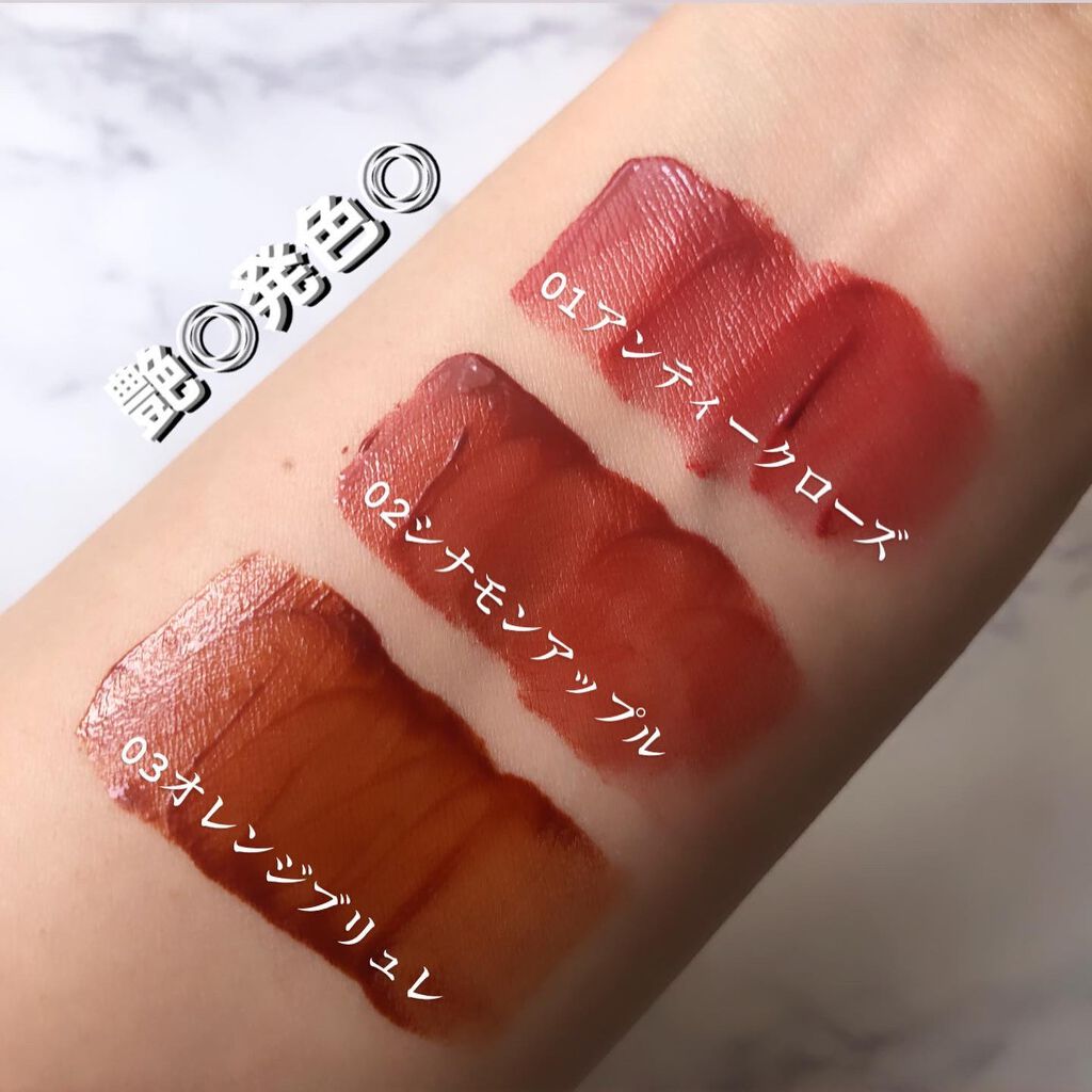 - ツヤ膜でLIPカラーを閉じ込める 塗ってから「5分」でかわいい唇完成♥ツヤがあふれ出るオイルinウォーターティント 水に対して約2倍のオイル成分を配合した「オイルinウォーター処方」 時間経過でツヤ膜がじゅわ~っとあふれ出し、 まるでグロスを重ねたような仕上がりに。みずみずしいツヤ感が持続します。 塗布後、時間経過(※)で色が定着して食べても飲んでも血色長持ち。 (※定着には個人差があります。弊社5分推奨) 高密着で唇に溶け込むように色づきます。 コップやペットボトルへの色移りがしにくくなります。