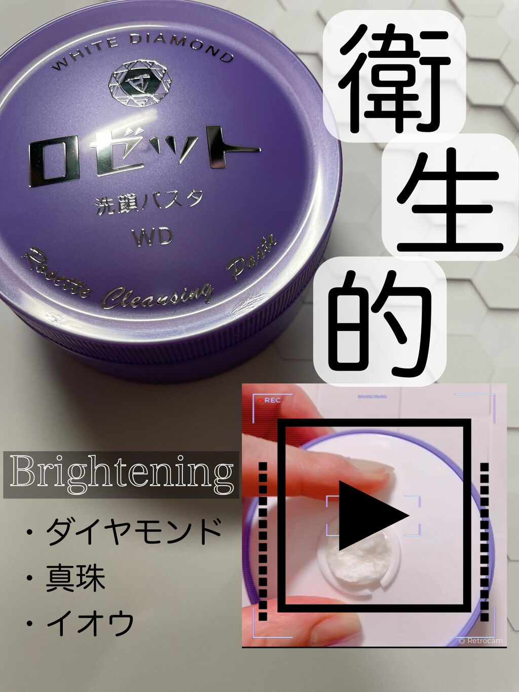 - <ロゼット洗顔パスタ ホワイトダイヤ> 水、ミリスチン酸、ステアリン酸、グリセリン、パルミチン酸、水酸化K、ジグリセリン、ラウリン酸、ラウラミドDEA、メチルグルセス-10、コカミドプロピルベタイン、ラウロイルメチルタウリンNa、イオウ、ダイヤモンド末、パール、グルコノバクター/ハチミツ発酵液、プラセンタエキス、アスコルビン酸硫酸2Na、ユキノシタエキス、カミツレ花エキス、乳酸桿菌/ハス種子発酵液、ダマスクバラ花油、プルーン種子油、BG、コレステロール、ヤシ脂肪酸K、ココイルグリシンK、ステアリン酸PEG-45、セテス-25、トリセテス-5リン酸、ステアリン酸グリセリル(SE)、ヒドロキシプロピルデンプン、(ジフェニルジメチコン/ビニルジフェニルジメチコン/シルセスキオキサン)クロスポリマー、亜硫酸Na、EDTA-4Na、香料