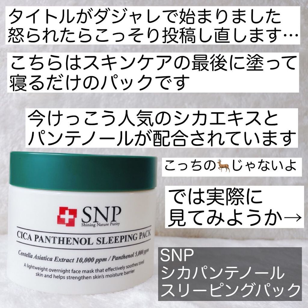 高濃度のツボクサエキス(10,000ppm)とパンテノール(10,000ppm)を配合で慢性的なゆらぎ肌を寝てる間に鎮静💤 これを塗って寝ると朝起きた時に肌のふっくら具合が全然違うし、ハリのある肌を実感できてます😊 『SNP シカ パンテノール スリーピング マスク』80ml/2,270円 (税込)