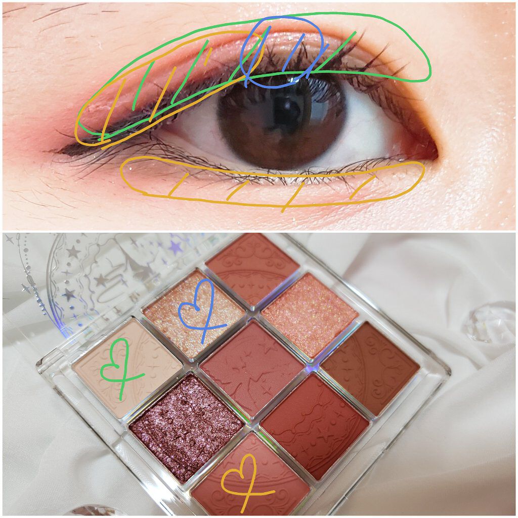 ZEESEAクォーツ9色アイシャドウパレットドリームランドアイシャドウJ12 ドライローズティンカーベルデザインの美しい型押しアイシャドウパレット(人´∀`*)今回は左上のマットのベージュをアイホールに、真ん中のマットな赤紫を二重幅に、右下の...