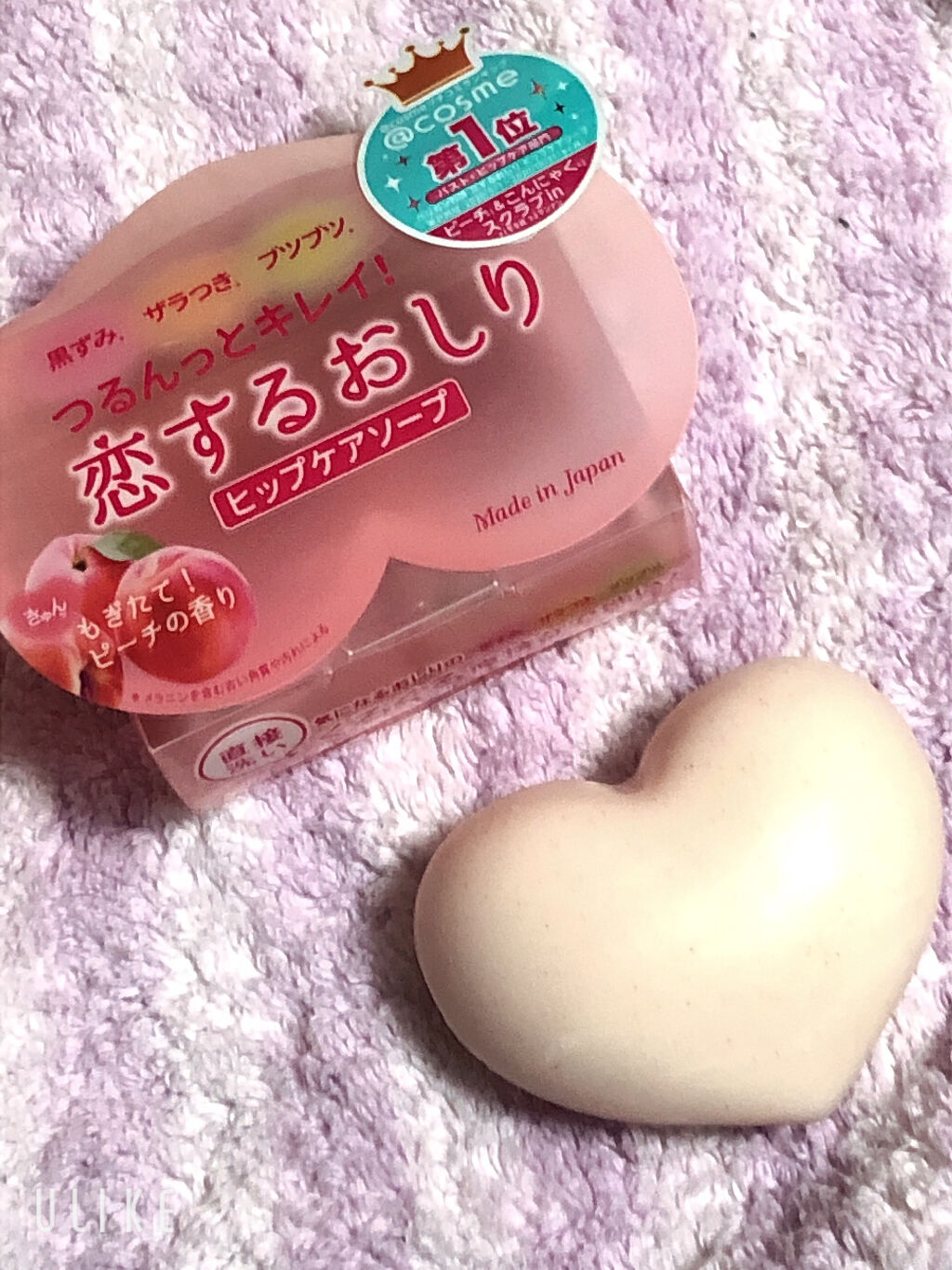 - 恋するおしり ヒップケアソープ おしりの黒ずみ・ザラつき・ブツブツにくるくる直接洗いの簡単ケア! (1)余分な古い角質を落とす:角質ケア スクラブ※1&ピーリング成分※2配合 【モモ核、マンナン※1 グルコノバクター/ハチミツ発酵液、 リンゴ酸・乳酸・クエン酸※2】 (2)必要なうるおいを守る:保湿ケア 6種※3の美容保湿エッセンスを配合 【モモ葉エキス、モモ種子エキス、ビワ葉エキス、キウイエキス、 アーチチョーク葉エキス、アロエベラ液汁※3】 ◎「きゅんっ」とする もぎたて!ピーチの香り