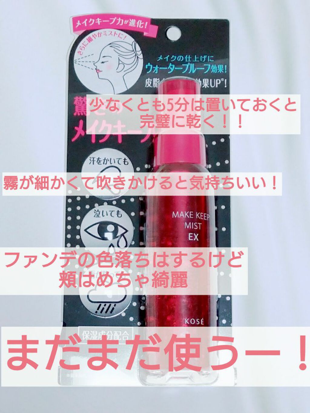 | フィックスミストランキング第8位 | メイクの上から5.6回くらい顔全体にシュッってしたら崩れにくいツヤ肌の完成です✧ | 詳細を見る | |