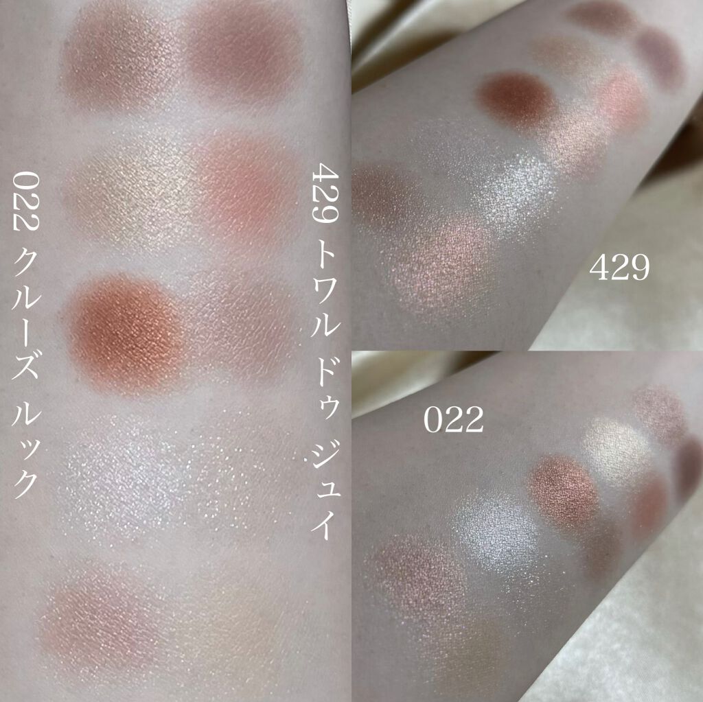 個人的1位は、429トワル ドゥ ジュイ👑 絶妙なカラーと粉質で、絶対に可愛いくなる💘 バズった743ローズ チュールも可愛いけど、使いやすいのはだんぜん429でした🫶🏻 423アンバー パールは、私には色味がしっくり来なかった…😢