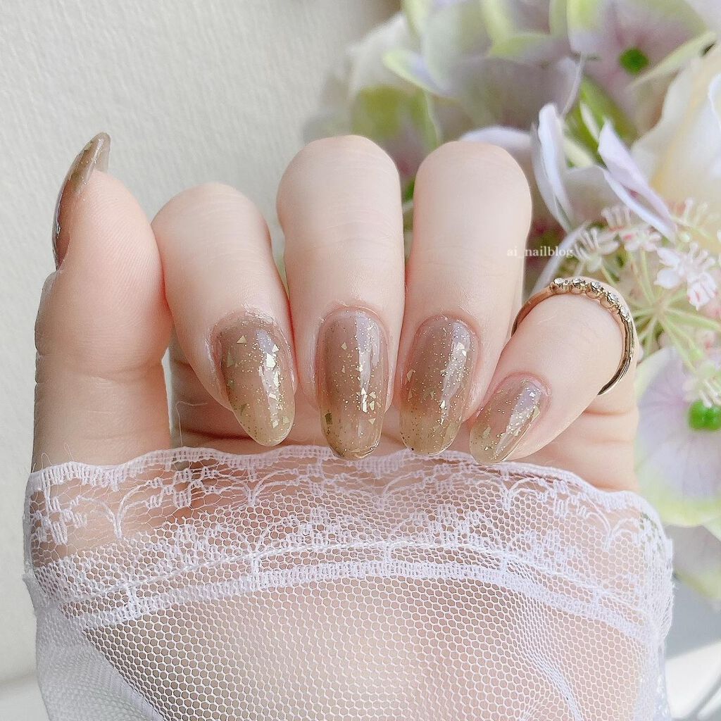 秋になるとやりたくなるブラウンネイル フレンチラインは金箔を使いました✿ キャンメイク (@canmaketokyo ) ・チャイティーラテ ネイルホリック (@nailholic_kose ) ・BR307