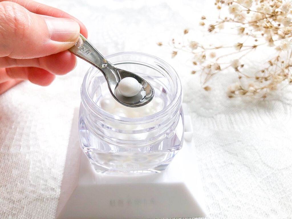 真珠のようなツヤ肌を叶えてくれる ✔加水分解卵殻膜 くすみのないまばゆいほどの輝きを叶える ✔加水分解コンキオリン シミ・そばかすにアプローチする ✔アルブチン 本物の真珠のようなカプセルがめちゃめちゃキレイで!!! 肌に乗せる直前にカプセルとジェルをなじませるから新鮮な状態で使えるのがいい👏👏 すっごい濃密な使い心地💕 キメも整えてくれるしハリも与えてくれる。 明るく透明感のあるお肌に仕上げてくれるよ🤭🤭🤭