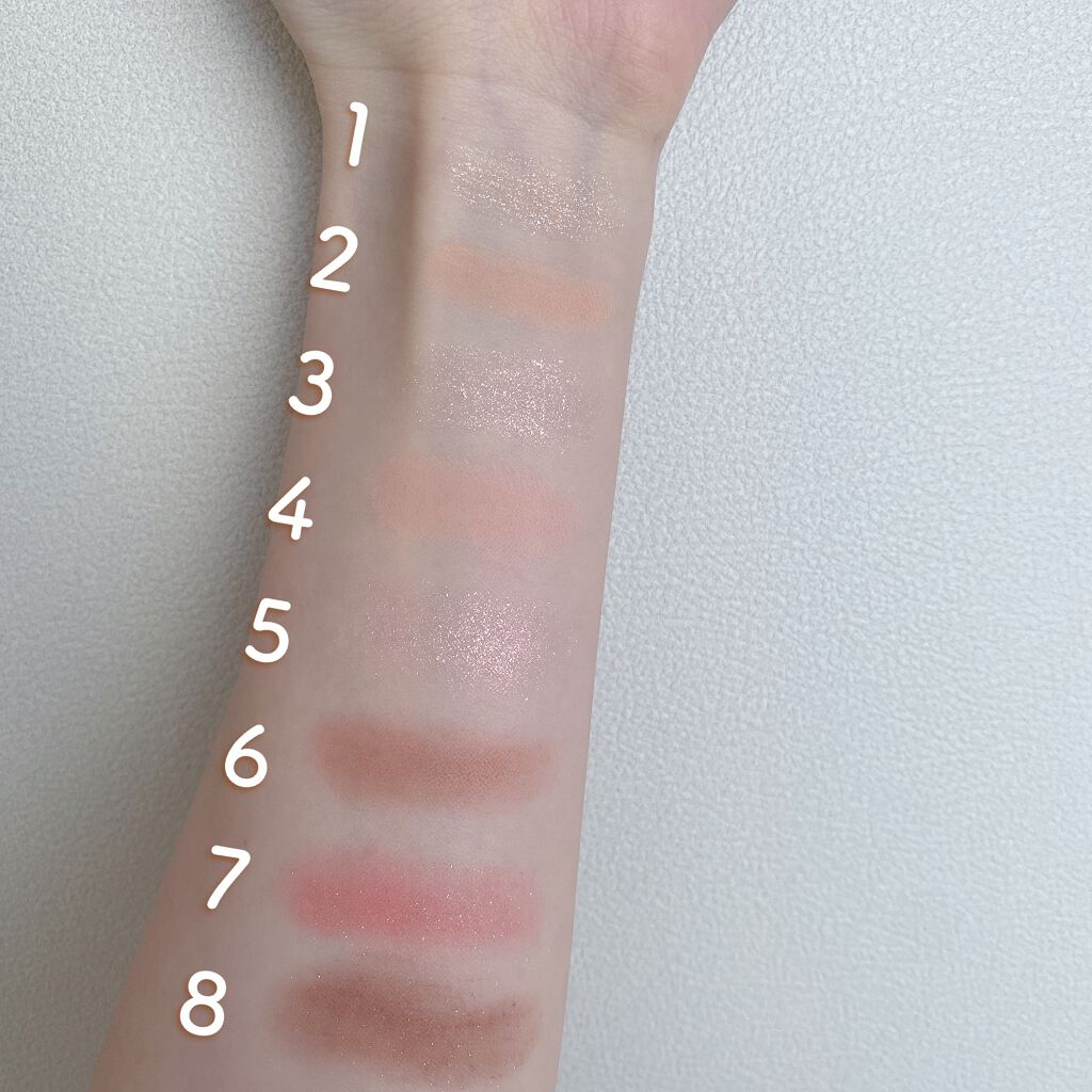 - <01 シュガーブラウニー> タルク、マイカ、ジメチコン、酸化鉄、ホウケイ酸(Ca/チタン)、イソドデカン、合成フルオロフロゴパイト、ホウケイ酸(Ca/Al)、酸化チタン、ステアロイルオキシステアリン酸オクチルドデシル、シリカ、フェニルトリメチコン、メタクリル酸メチルクロスポリマー、ジエチルヘキサン酸ネオペンチルグリコール、ミリスチン酸Mg、メチルプロパンジオール、ナイロン-12、(ビニルジメチコン/メチコンシルセスキオキサン)クロスポリマー、プロパンジオール、ステアリン酸Mg、ラウリン酸ヘキシル、(ジメチコン/ビニルジメチコン)クロスポリマー、マカデミア種子油、マンガンバイオレット、リンゴ酸ジイソステアリル、(ヘキシルデカン酸/セバシン酸)ジグリセリルオリゴエステル、ヘキサ(ヒドロキシステアリン酸/ステアリン酸/ロジン酸)ジペンタエリスリチル、セスキイソステアリン酸ソルビタン、テトラ(ヒドロキシステアリン酸/イソステアリン酸)ジペンタエリスリチル、ホウケイ酸(Ca/Na)、ステアリン酸ジメチコノール、トリエトキシカプリリルシラン、カルミン、サラソウジュ種子脂、ジフェニルシロキシフェニルトリメチコン、ジイソステアリン酸ポリグリセリル-3、黄4、赤226、合成ワックス、酸化スズ、グンジョウ、ラウロイルリシン、メチコン、水 <02 ローズペタル> タルク、マイカ、ジメチコン、ホウケイ酸(Ca/チタン)、酸化チタン、ホウケイ酸(Ca/Al)、合成フルオロフロゴパイト、酸化鉄、ナイロン-12、トリエチルヘキサノイン、シリカ、ホウケイ酸(Ca/Na)、メタクリル酸メチルクロスポリマー、ジエチルヘキサン酸ネオペンチルグリコール、ミリスチン酸Mg、フェニルトリメチコン、トリイソステアリン酸ポリグリセリル-2、ステアロイルオキシステアリン酸オクチルドデシル、ステアリン酸Mg、メチルプロパンジオール、オクチルドデカノール、マンガンバイオレット、赤226、リンゴ酸ジイソステアリル、ヘキサ(ヒドロキシステアリン酸/ステアリン酸/ロジン酸)ジペンタエリスリチル、プロパンジオール、ラウリン酸ヘキシル、マカデミア種子油、イソステアリン酸水添ヒマシ油、(ジメチコン/ビニルジメチコン)クロスポリマー、窒化ホウ素、カルミン、(ヘキシルデカン酸/セバシン酸)ジグリセリルオリゴエステル、ネオペンタン酸イソステアリル、グンジョウ、セスキイソステアリン酸ソルビタン、(HDI/トリメチロールヘキシルラクトン)クロスポリマー、ポリブテン、酸化スズ、トリエトキシカプリリルシラン、フェノキシエタノール、ラウロイルリシン、ステアリン酸ジメチコノール、合成ワックス、黄5、黄4、水添レシチン、メチコン、コンジョウ、水 <03 ヌードポーション> タルク、マイカ、ポリブチレンテレフタレート、ビスジグリセリルポリアシルアジペート-2、ジメチコン、ホウケイ酸(Ca/チタン)、ホウケイ酸(Ca/Al)、シリカ、酸化チタン、アクリレーツコポリマー、(エチレン/VA)コポリマー、酸化鉄、合成フルオロフロゴパイト、ナイロン-12、トリイソステアリン酸ポリグリセリル-2、イソドデカン、ホウケイ酸(Ca/Na)、ステアロイルオキシステアリン酸オクチルドデシル、フェニルトリメチコン、マンガンバイオレット、メチルプロパンジオール、オクチルドデカノール、メタクリル酸メチルクロスポリマー、プロパンジオール、ヘキサ(ヒドロキシステアリン酸/ステアリン酸/ロジン酸)ジペンタエリスリチル、マカデミア種子油、リンゴ酸ジイソステアリル、ミリスチン酸Mg、ステアリン酸ジメチコノール、ステアリン酸Mg、ジエチルヘキサン酸ネオペンチルグリコール、トリエトキシカプリリルシラン、水添レシチン、ラウリン酸ヘキシル、カルミン、(ジメチコン/ビニルジメチコン)クロスポリマー、(ヘキシルデカン酸/セバシン酸)ジグリセリルオリゴエステル、セスキイソステアリン酸ソルビタン、酸化スズ、フェノキシエタノール、合成ワックス、メチコン、黄4、グンジョウ、水 <09 スイートシリアル> タルク、ホウケイ酸(Ca/チタン)、マイカ、酸化チタン、ホウケイ酸(Ca/Al)、ホウケイ酸(Ca/Na)、ビスジグリセリルポリアシルアジペート-2、合成フルオロフロゴパイト、オクテニルコハク酸デンプンAl、フェニルトリメチコン、窒化ホウ素、トリ(カプリル酸/カプリン酸)グリセリル、ポリブチレンテレフタレート、ナイロン-12、ステアロイルオキシステアリン酸オクチルドデシル、トリイソステアリン酸ポリグリセリル-2、酸化鉄、ミリスチン酸Mg、アクリレーツコポリマー、ジメチコン、メチルプロパンジオール、シリカ、ステアリン酸Mg、(エチレン/VA)コポリマー、ジエチルヘキサン酸ネオペンチルグリコール、ヘキサ(ヒドロキシステアリン酸/ステアリン酸/ロジン酸)ジペンタエリスリチル、プロパンジオール、(ジフェニルジメチコン/ビニルジフェニルジメチコン/シルセスキオキサン)クロスポリマー、リンゴ酸ジイソステアリル、ポリブテン、メタクリル酸メチルクロスポリマー、ステ